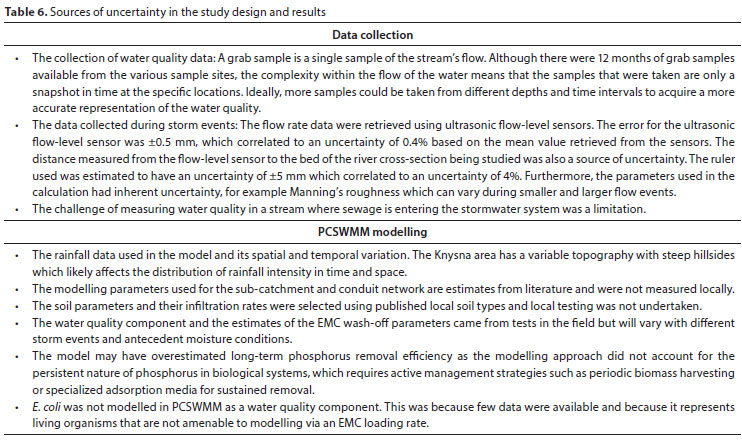 More than 12 months of nutrient data were collected across the Bongani River catchment for TN and TP. These allowed the estimation of EMCs that could then be compared with published values. As can be seen in Table 4, they were much higher than the published values, except for the pervious land use group.