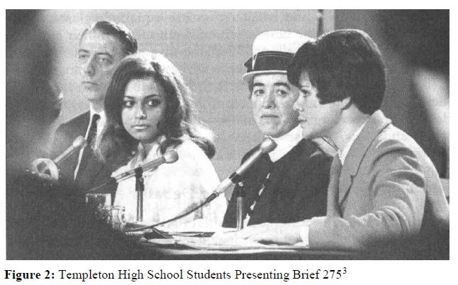 In her article, "Reminiscences of the Commission Chair" (1997), Bird shares her recollection as chair during the Commission public hearings. She recalls one of the presentations in Vancouver by 17-year-old students from Templeton High School, whom she describes as "exceedingly eloquent" and who "presented a brief prepared by 35 different ethnic groups. They were speaking on behalf of their mothers, who were immigrants and could not speak English much" (Bird 1997, 189). The two high school students, Loredana d'Elia and Alida Bianchi, were refugees from the Italian-speaking area of Yugoslavia (see Figure 2) (The Gazette, 1968, 24). These students requested English-language classes and technical training for their immigrant mothers so that they may access employment.