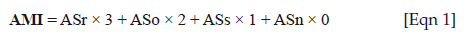 where: AMI is the adaptation mechanism index, ASr is the number of responses with regular practice of drought adaptive mechanisms, ASo is the number of responses with occasional practice of drought adaptive mechanisms, ASs is the number of responses with rare practice of drought adaptive mechanisms and ASn is the number of responses with no practice of drought adaptive mechanisms. Therefore, the most used mechanism produced the highest AMI value.