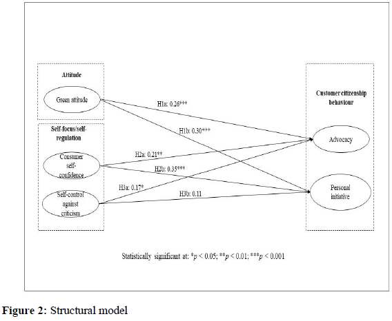 • H1. Green attitude positively and significantly influences (a) advocacy and (b) personal initiative behaviours.