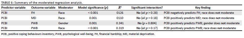 The researcher used surveys with Likert scale question types. The questionnaire responses were saved on the Lime Survey. The Lime Survey allowed the researcher to assign attributes to questions, such as numeric values or codes to facilitate scoring. The Lime Survey allowed the researcher to create, distribute and collect responses to surveys via the Internet. Scoring was managed within the Lime Survey platform and was accessible through the online interface. Once the respondents have completed the survey, the Lime Survey provides options for exporting response data in various formats, such as a Comma-Separated Values (CSV) file or Excel. Data were exported in Excel. The researcher used external software, namely Statistical Package for the Social Sciences (SPSS), for further analysis, such as calculating aggregate scores, generating reports or conducting statistical analysis. Hierarchical moderated regression analysis (IBM Corp., 2021; Hayes, 2018) was applied to assess the extent to which the biographical variables (age, race, gender and years of service) significantly moderate the relationships between the individual level (OWB and SWB) and organisational level (leadership, POS and organisational coping behaviours) (Zwane, 2025). Moreover, the significance levels of the interaction effects, additionally with the differing values of the moderator variable, were explained using bootstrapping bias-corrected 95% lower level (LLCI) and upper level (ULCI) confidence interval levels, which exclude zero (Zwane, 2025).