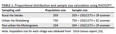 Table 3, shows all the 150 women who were invited to participate, with the majority 111 (74%) residing in urban (Ha-Shalabeng) and peri-urban areas (Ha-Molengoane), while 39 (26%) lived in a rural area (Ha-Setoko).