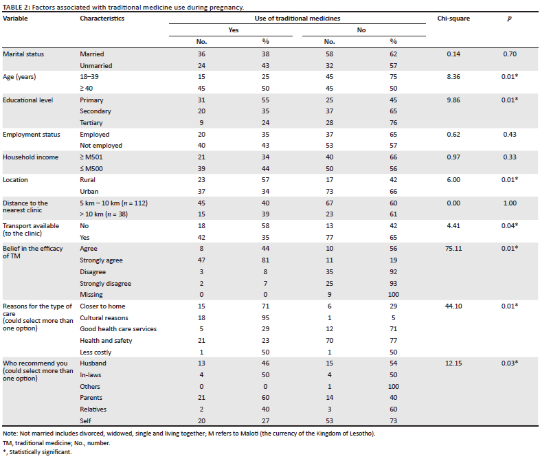Usage of traditional medicine during pregnancy and the associated factors among Basotho women