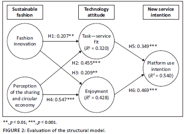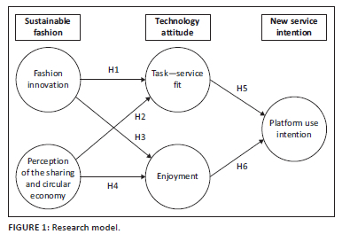 DESIGN/METHODOLOGY/APPROACH: The conceptual model focuses on how fashion innovation (FI) and the perception of the sharing and circular economy (PSCE) affect task-service fit (TSF), enjoyment (ENJ) and the intention to use the platform. A survey and partial least squares structural equation modeling were employed to test the proposed hypotheses. Data from 192 participants with an academic background in fashion were empirically analysed