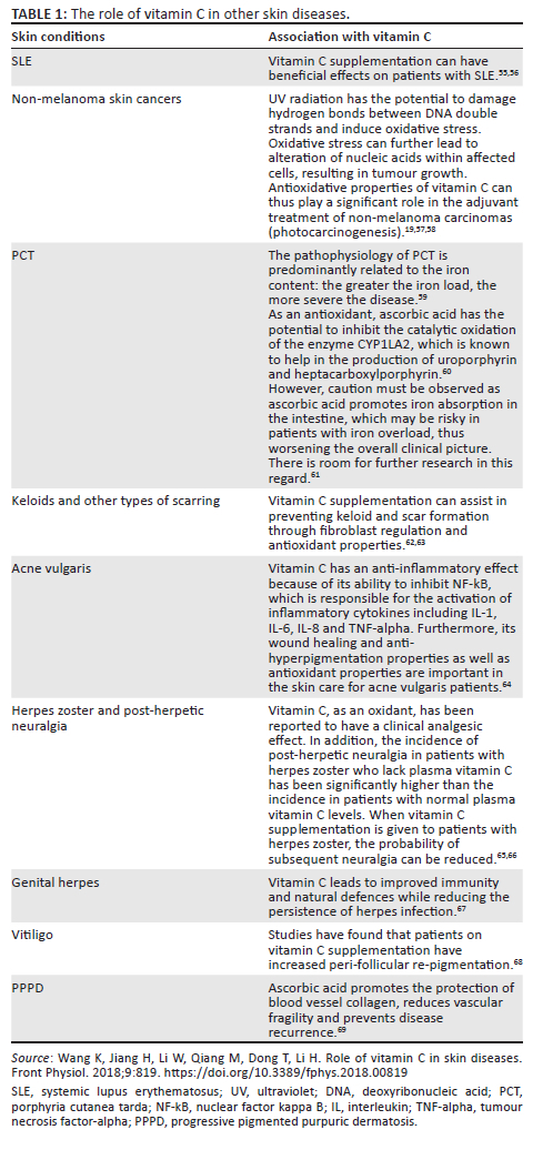 The role of ascorbic acid is also noted in other dermatology-related skin conditions, see Table 1.