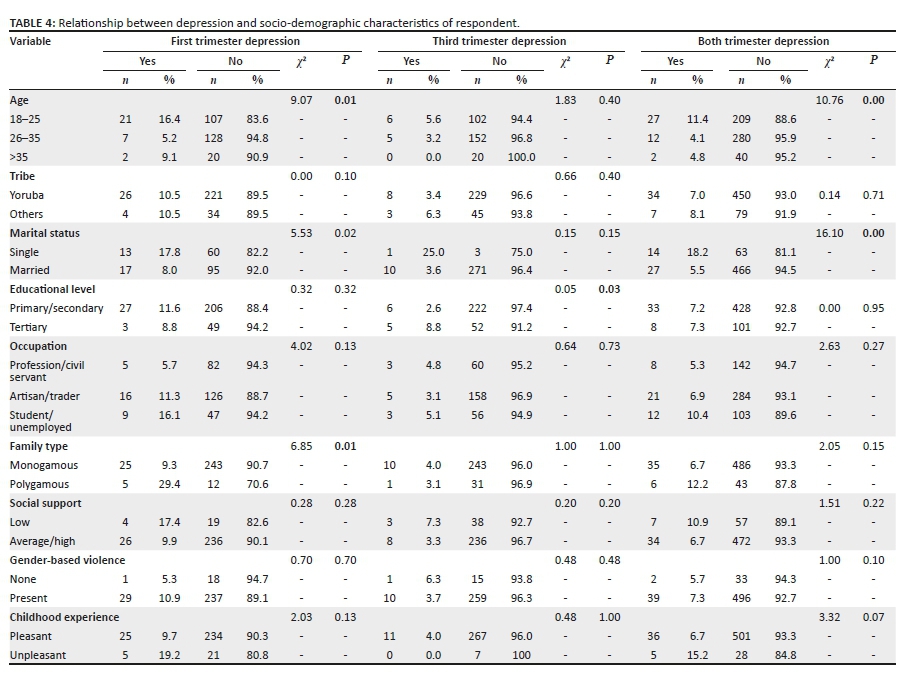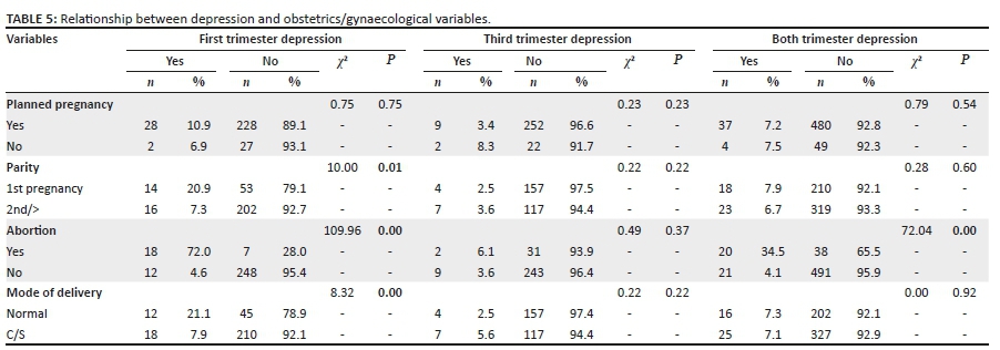 In our study, majority of the pregnant women had a planned pregnancy, which is in agreement with that of Thomson and colleague.4 Our study was done among married Africans, who believe that childbearing in marriage is essential. The pattern of distribution of socio-demographic and obstetrics and gynaecological variables across trimesters were majorly similar, and there was no significant difference across trimesters except for marital status, occupation status, childhood experience, parity and mode of delivery.