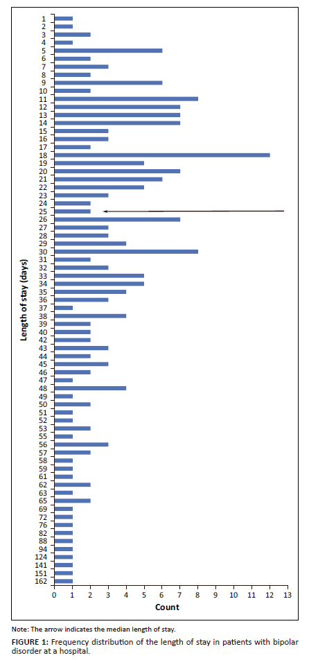 BACKGROUND: Bipolar disorder (BD) is a chronic, disabling mental illness that may require recurrent hospitalisation. The length of hospital stay (LOS) for BD patients is variable, and literature suggests that this is because of clinical and socio-demographic factors.