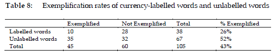 4.3 Effects of word currency on exemplification