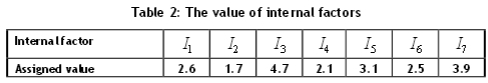 Assessment of the internal and external factors includes interval [0,5]. If the estimated