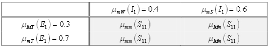 The following example refers to a combination of the factors I1and E1. Using only part of the table and the corresponding decision rules, we obtained: