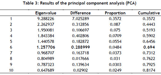 The internal consistency of the survey responses was assessed by measuring the intercorrelation among the two-paired questionnaire items. The values of Cronbach's alpha for the two-paired features of usefulness and benefit were 0.75 and 0.84, indicating that the participants were answering the questions consistently.Because there were so many items, we checked whether dimension reduction could be made by performing principal component analysis (PCA) with the correlation matrix. We obtained six eigenvalues above the point of 1.0, which explained 69.40% of the variance (Table 3). Therefore, the individual items could be grouped into six factors.