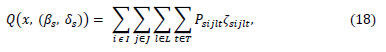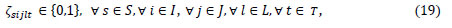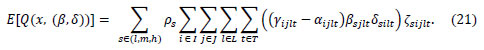 Uncertainty is only introduced through β, where β = {βsjlt : s e S,j e J, l e L,t e T} and through ζ, where ζ = {ζsijlt - s e S, iel, j e I, le L, t e T}. The second-stage decision variable ζsijlt indicates whether product ; should be allocated to store I for customer i during period t under scenario s. The objective function for this two-stage stochastic programming model is provided in Equation (18).