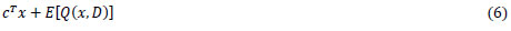 A two-stage SP model segregates decisions into a first stage (before uncertainty is revealed) and a second stage (after uncertainty is realised) [50]. The first stage is based on historical or estimated data [22], while the second stage makes adjustments, based on outcomes. This adaptability is referred to as recourse [8], leading to the term "recourse model". The standard formulation is presented in Equations (6) and (7).