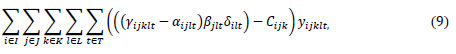 The decision variable yijklt determines whether customer i receives an offer for product j, the marketing channel k used, the store I to which the product is allocated, and the specific period t. The complete deterministic ILP formulation is presented in Equations (9) to (17).