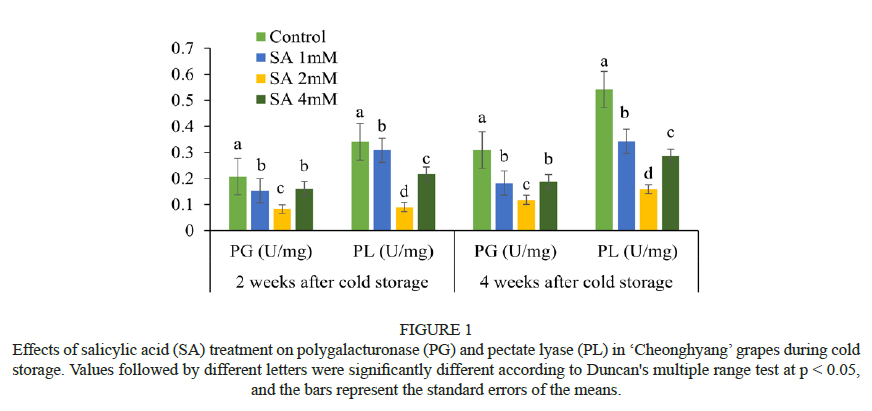 Effect of SA treatment on pectate lyase and polygalacturonase activity