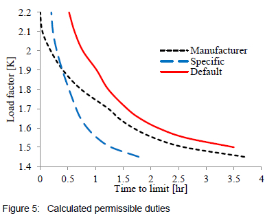 Conversely, the design-specific parameter results are conservative as is evident to those of both the default and manufacturer solution. This is attributed to the thermal time constants being derived from design characteristics of the actual transformer unit. The conservatism, however, could be coincidental and could vary pending the transformer under consideration. Additional case studies like the one presented in this paper are required to confirm this.
