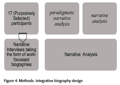 Research undertaken to explore the influences on the work-lives of persons with psychiatric disability will be used here to illustrate the link of occupational therapy to resilience. Figure 4 (below) illustrates a summary of the methods used for the integrative biography design that was informed by a narrative inquiry21,22.