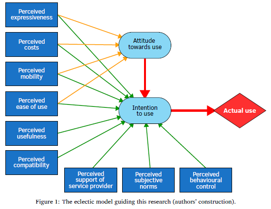 Accordingly, in this research, an eclectic model was developed from the critical tenets of adoption models like the technology acceptance model (TAM) (Yousafzai et al., 2007), theory of reasoned action (TRA) (Loken, 1983), theory of planned behaviour (TPB) (Weigel et al., 2014) and diffusion of innovation theory (DOI) (Rogers et al., 2019). The researchers designed a nine-construct eclectic model to provide research boundaries and assist in formulating research questions. The model constructs are as follows: Perceived Expressiveness (PE), Perceived Mobility (PM), Perceived Support of Service Provider (PSoSP), Perceived Compatibility (PComp), Perceived Ease of Use (PEOU), Perceived Costs (PC), Perceived Usefulness (PU), Perceived Subjective Norms (PSN) and Perceived Behavioural Control (PBC). Figure 1 depicts the eclectic model.