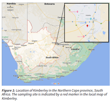 Kimberley is the capital and most populous city (270 062) in the Northern Cape province, South Africa (Figure 1) (Statistics South Africa., 2023). Compared to larger cities in South Africa (Johannesburg or Cape Town), Kimberley is relatively smaller in terms of population and urban development. Kimberley has a semi-arid climate characterised by dry and arid conditions (Frances Baard District Municipality, 2010).