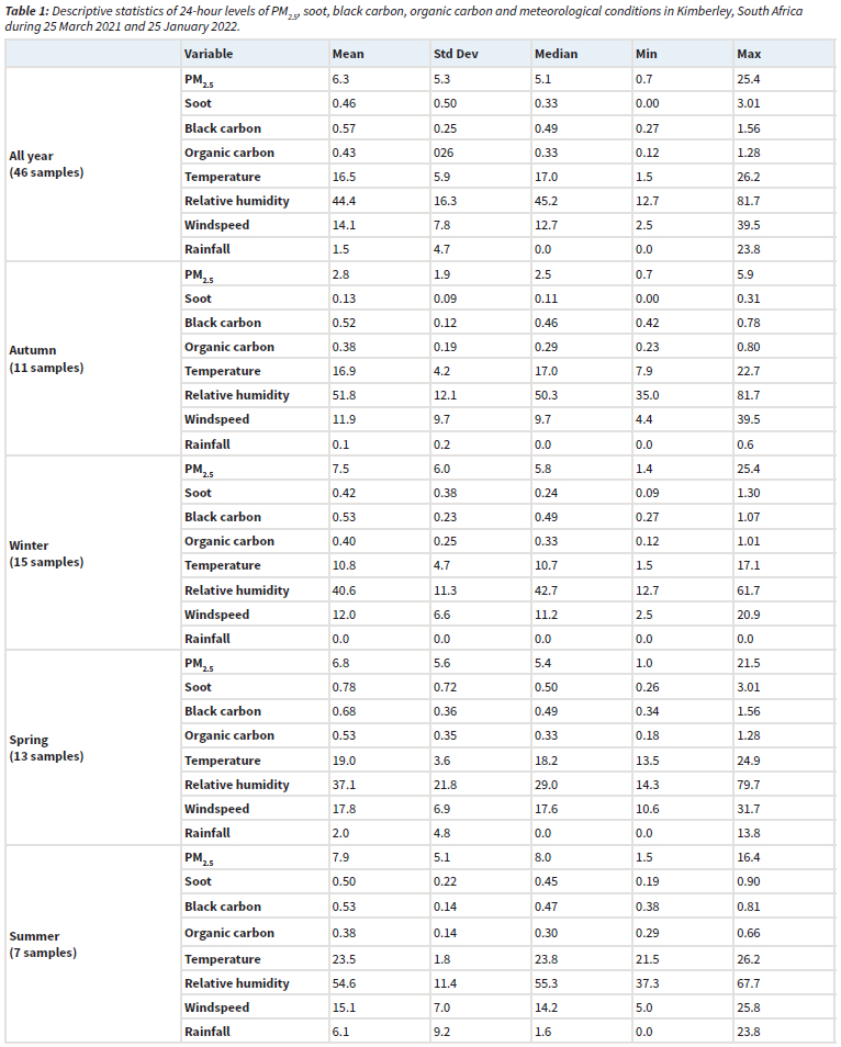 Ambient PM2.5, soot, black carbon and organic carbon levels in Kimberley, South Africa