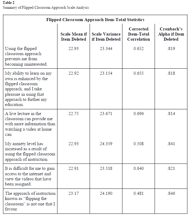 Table 2 presents the statistical analysis of the Flipped Classroom Approach scale, which assesses students' perceptions in the context of the flipped classroom approach.