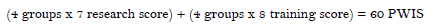 The project groups will, instructed by the IRC, define goals of their collaboration. An output matrix, as shown in the case study, supports this task while already providing the numeric value of the impact of each output (which was provided by survey results in the sector). Let us assume, in our example, the four smaller groups A, B, C and D aim for research papers of their respective fields, an output, valued by the matrix with a score of seven. The larger project groups E, F, G and H would like to hold training activities in their logistical niche, an output valued at a score of eight. The potential weighted innovation score (PWIS) of this IRC's activities could, therefore reach the following number:
