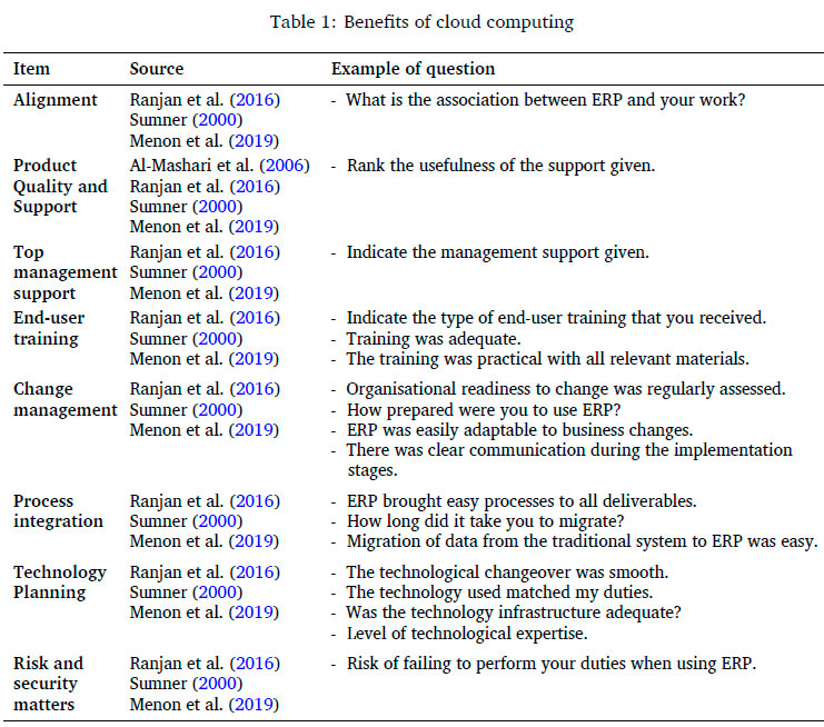 ERP systems provide significant advantages to companies who adopt them as they integrate business applications using real-time information and provide cloud storage ready for retrieval of that information. Businesses stand to gain from cloud computing services (de Oliveira & de Almeida, 2019), as they can get access to infrastructure and software at affordable rates. cloud computing offers businesses the opportunity to improve their IT capabilities in a way that they previously could not (Paksoy et al., 2021). ERP systems provide the means for management to respond to the increasing business needs in effective and efficient ways better than any previously implemented IT solution (Wang et al., 2021). The successful adoption of the 4th industrial revolution relies on the commitment of governments, businesses, and citizens to support transformation and be ready to adapt to change, have the willingness to learn, and have enough resources to do so.