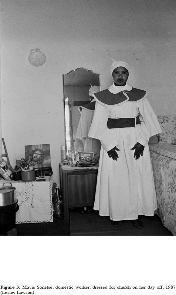 Together with Paul Weinberg, Lesley Lawson, Cedric Nunn and Peter Mackenzie, Badsha co-founded the progressive photographic collective and agency, Afrapix, in 1982. This followed the highly charged photographic and political debates at the Festival of Culture and Resistance held in Botswana. These photographers were already immersed in political, educational and trade union work - a new set of institutional spaces for photography. Cedric Nunn points to the fact that the 'documentary project' emerged before the big mobilizations of the mid-1980s: 'you consolidate culture, and you develop resistance. And so when the resistance began then we began documenting that as well. But we actually predated the re-sistance.'21 Lesley Lawson also worked from the very early 1980s in worker and alternative education, developing a focus on women: '[W]hat I was interested in really was ordinary people's lives... it was political because of the nature of South Africa, and because ordinary people's lives were so embattled. And also at the same time, in that period, so heroic, in a way'.22
