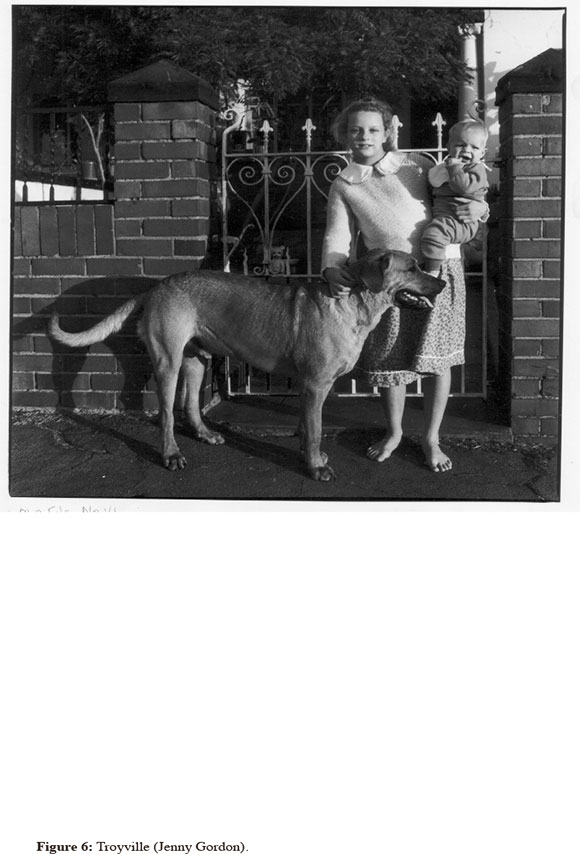 Related to proximity, there was also a move by some white photographers to photograph 'their own communities'. Encouraged by David Goldblatt, Lesley Lawson and Jenny Gordon (Figure 6) at different times both photographed the more vulnerable white sectors, the supposed beneficiaries of apartheid. The benefits were racial, yes, but in terms of class, less so. Such photographers dramatically pinpointed this.