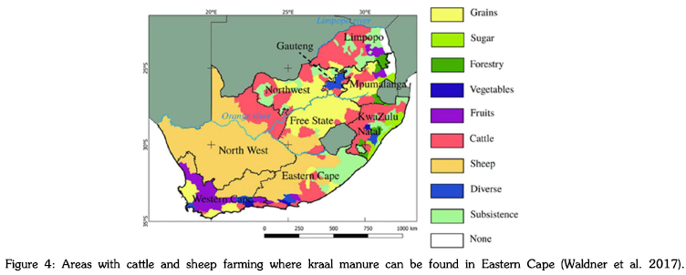 The financial risk in the commercialization process is explained by the costs involved. Commercialization of hydrogen production needs to be less costly, fully functional and be reliable to the end-user. As much as the raw material is coming from abundant kraal manure in the Eastern Cape, the process of production needs to reach a stage of maintenance and repair after distribution which is very costly. Furthermore, the product readiness stage involves steps that are repeated; and these must reliable (assessing reliability is costly) and consistent (Baeyens et al., 2020). Furthermore, scaling of hydrogen production can be costly. The solution to these risks has been alluded to by Baeyens et al. (2020) that prioritizing the source of hydrogen production from waste by the government can be key to mitigating the risk. In addition, government policies can open doors and provide finances for these kinds of exercises to the needy. Moreover, it is anticipated that use of manure as feedstock can save a lot of raw material costs as the province is in an abundance of villages and farms with cattle and sheep (see Figure 4). The cost can be contained by devising an effective manure collection strategy that involves community members. A project like the hydrogen production from kraal manure can be successfully spined out at universities for resource support (Campbell, 2005). For instance, universities have laboratories and informed researchers to develop the process of hydrogen production. In addition, it is easier for universities to get facilities and technology within its focused environment, and attract investors, funding and incentive systems in organisations such as National Research Fund, Technology Innovation Agency and others (ESI Africa, 2021). It has been shown in Campbell (2005) that companies funded within universities are more stable and progressive than those that are externally funded. Furthermore, several benefits from the commercialization project of hydrogen production are education transformation that link knowledge produced by universities into markets, influence socio-economic indicators like increased employability, minimising crime, addressing inequality, and environmental factors (Assembly, 2015; Franco-Giraldo & Gentilin, 2021) Many countries including South Africa are challenged with commercialisation of products, especially those that come from postgraduate research (Kim et al., 2020; Thurbon et al., 2021). However, lessons can be learnt from Korea on promoting hydrogen production from environmental factors and a push by policymakers through their development strategies and ambitions on traditional developments (Haslam et al., 2012). The Korean government committed to investing in hydrogen and fuel-cell R&D programs. By 2007, public-private investment exceeded US$110 million p/a (see Haslam et al., 2012). There are legislative plans on energy development and climate change in Korea. By 2005, Korea was just 25 years behind the technology level of Japan and the US.