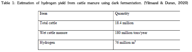 Kraal manure is a by-product of cattle feeding that is high in nitrogen and phosphorus. Nitrogen and phosphorus from kraal manure pollute water bodies while methane emissions pollute the air and cause foul odour (Yimazel & Duran 2021). Processing of kraal manure to produce hydrogen addresses environmental issues while recovering valuable gas that has numerous uses. In addition to the extraction of gases, the potassium and phosphorus by-products can be extracted and used in producing fertilizers (Hussain et al., 2021). The by-products can be commercialized by selling them to companies that manufacture fertilizers.