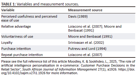 Keywords: artificial intelligence; personalisation; e-commerce; loyalty; purchase intention; repeat purchase intention.