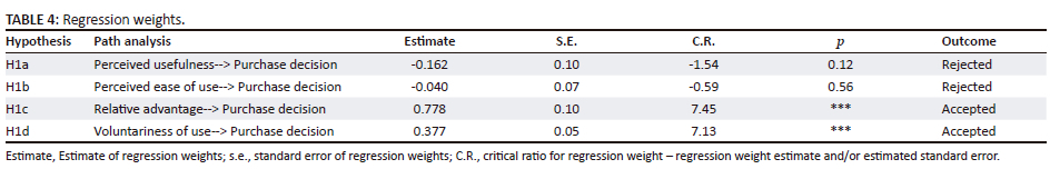 Sub-hypothesis H1c: Relative advantage and purchase decision
