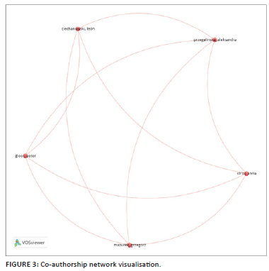 The analysis of published literature by authors revealed 95 contributors across the 27 literature studies. A co-authorship analysis using VOSviewer was conducted with a minimum threshold of one document and five citations per author and resulted in only 42 authors meeting this criterion. Subsequently, a network visualisation of co-authorship identified five authors with the most extensive set of connection links (Figure 3), while the remaining 37 authors had no link connections. These findings illustrate the collaborative patterns among authors within the analysed literature and highlight the presence of a cohesive cluster of authors with established connections alongside a significant proportion of authors with no collaborative links. As illustrated, the authors with connections are Przegalinska et al. (2019).