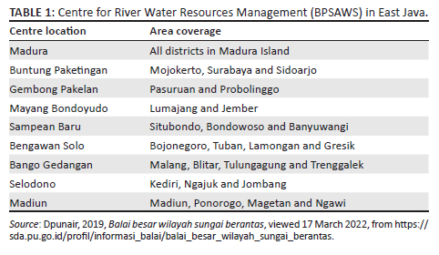 The Centre for River Basin Water Resources Management (BPSAWS) is responsible for managing river water resources (see Table 1).