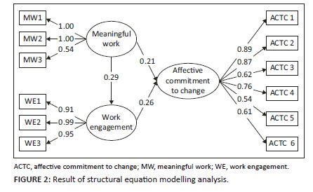 CONTRIBUTION/VALUE-ADD: This study has presented the advantageous impact of meaningful work and work engagement on affective commitment to change.