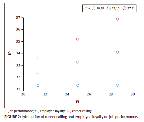 The role of CC as a moderator in the relationship between EL and JP is also significant (H3). These results indicate that the stronger the perception of an employee's CC, the greater its contribution in strengthening the relationship between loyalty and performance (Parola et al., 2023; Shen et al., 2021). This is consistent with research (Shan & Tian, 2022), which states that CC provides intrinsic motivation that strengthens loyalty to the organisation and contributes to high performance.