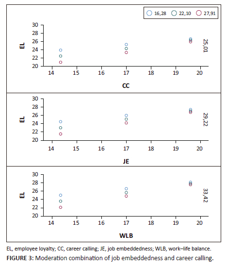 ORIENTATION: This study investigates the dynamics of work-life balance (WLB) in influencing job performance (JP), incorporating employee loyalty (EL) as a mediator and career calling (CC) and job embeddedness (JE) as moderators.