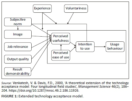 Venkatesh, V. & Davis, F.D., 2000, 'A theoretical extension of the technology acceptance model: Four longitudinal field studies', Management Science 46(2), 186-204. https://doi.org/10.1287/mnsc.46.2.186.11926 [ Links ]
