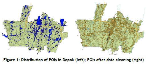4. Existing bus stops: The current BisKita Depok bus stops were georeferenced through field surveys, providing a baseline for evaluating the network's existing coverage and for incorporating them into the optimisation model.