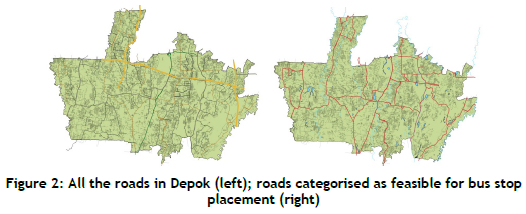 2. Classification of road hierarchies: Roads were categorised to identify those where bus stop placement was feasible were feasible (Figure 2).