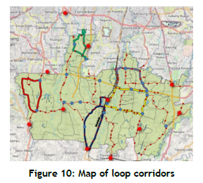• Circuit corridor (Figure 10): Five local loop routes designed to enhance coverage without requiring significant route adjustments.