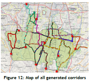Figure 12 shows the spatial alignment of these proposed corridors, emphasising their connectivity with the selected bus stops.