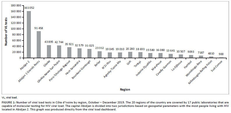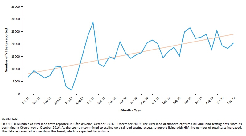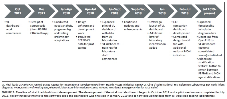BACKGROUND: The Ministère de le Santé et de l'Hygiène Publique in Côte d'Ivoire and the international community have invested in health information systems in Côte d'Ivoire since 2009, including electronic laboratory information systems. These systems have been implemented in more than 80 laboratories to date and capture all test results produced from these laboratories, including HIV viral load (VL) testing. In 2018 the national HIV programme in Côte d'Ivoire requested international support to develop real-time tools such as dashboards to aggregate and display test-specific data such as HIV VL testing to support the country's programmatic response to HIV