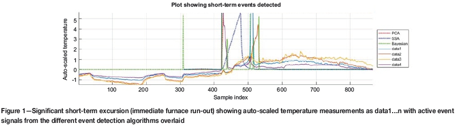 From the above system evaluation it is evident that the proposed event detection system was able to reliably detect both short-term spike events and long-term trend events. It is important to note that although not all detected events resulted in run-outs, they are all associated with some specific abnormal conditions existing in, or relating to, the furnace operation at that point in time and should always be investigated as a matter of urgency on an operating site.