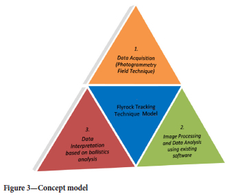 The focus of this study was to develop a concept that can mathematically quantify the trajectory of flyrock from a blast, with the aim of enabling future researchers to mathematically quantify the impact of the different blast design parameters on the flyrock throw distance. After a comparative analysis of various technologies, it was decided to use photogrammetry as the foundation of the proposed technique. A modified version of traditional photogrammetry was required to fit the objective of the research.