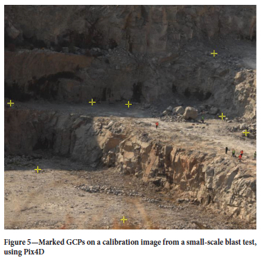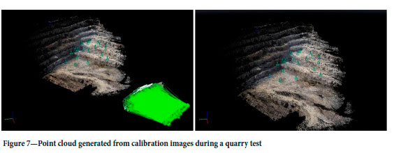 Site calibration of the cameras at the quarry tests was done in the same way as in the controlled concept tests, i.e. by creating a point-cloud data-set of the site before or after the blast to determine the internal and external specifications of the cameras on the day.