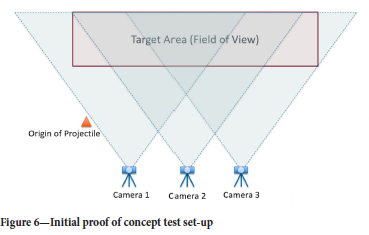 The process of obtaining these measurements has been tested using existing stereo mapping software. Initial concept tests proved that is it possible to obtain positional coordinates of a projectile travelling through the air. This process is being refined as part of ongoing development work.
