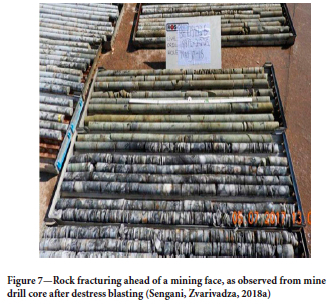 The degree of fracturing ahead of the excavation face can also be observed by collecting drill core from the excavation face before and after destress blasting and analysing it, as per Figure 7.
