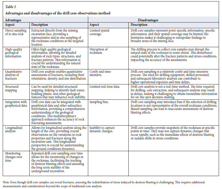 The advantages and disadvantages of the drill core observations method are presented in Table 5.